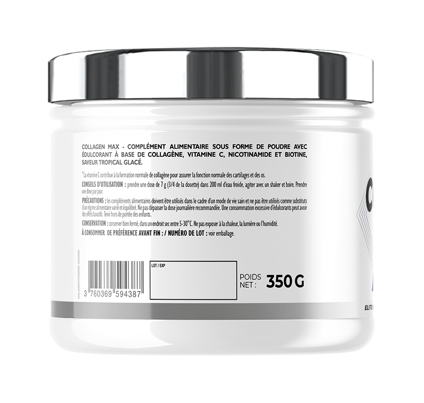 Collagen Max (350 g) est LA formule parfaite de collagène pour les sportifs, mais aussi les non-sportifs, qui souhaitent prendre soin de leur os, de leurs articulations ou bien de leurs peaux.